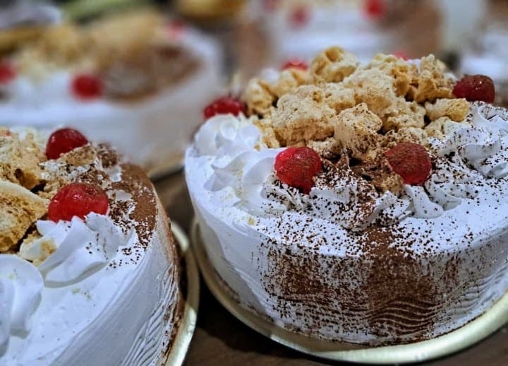 Pedir con 2 días de antelación sin excepción. Bizcochuelo vainilla. Decorado Crema de Leche o Ledevit Relleno de crema pastelera con durazno y dulce de leche